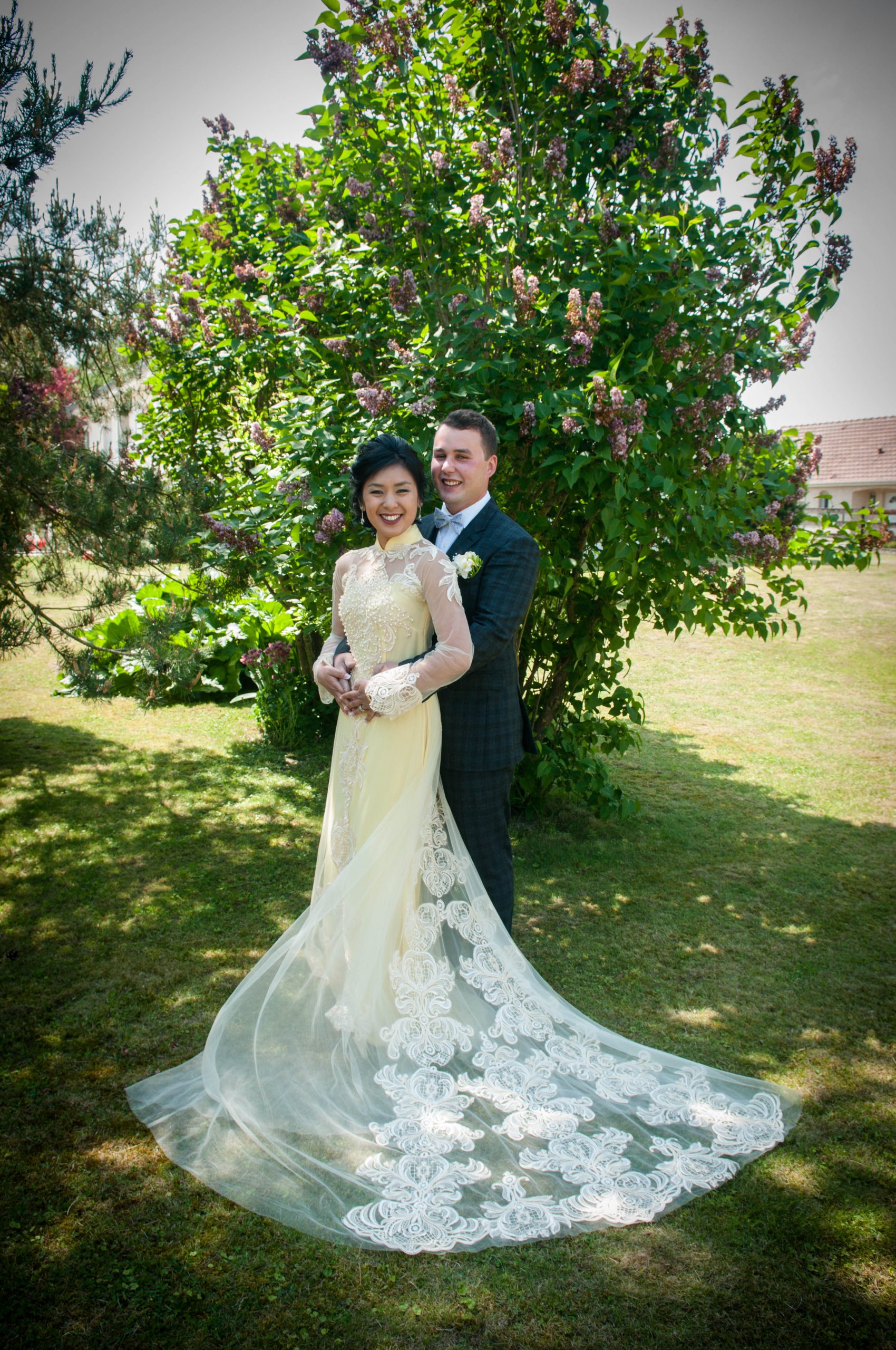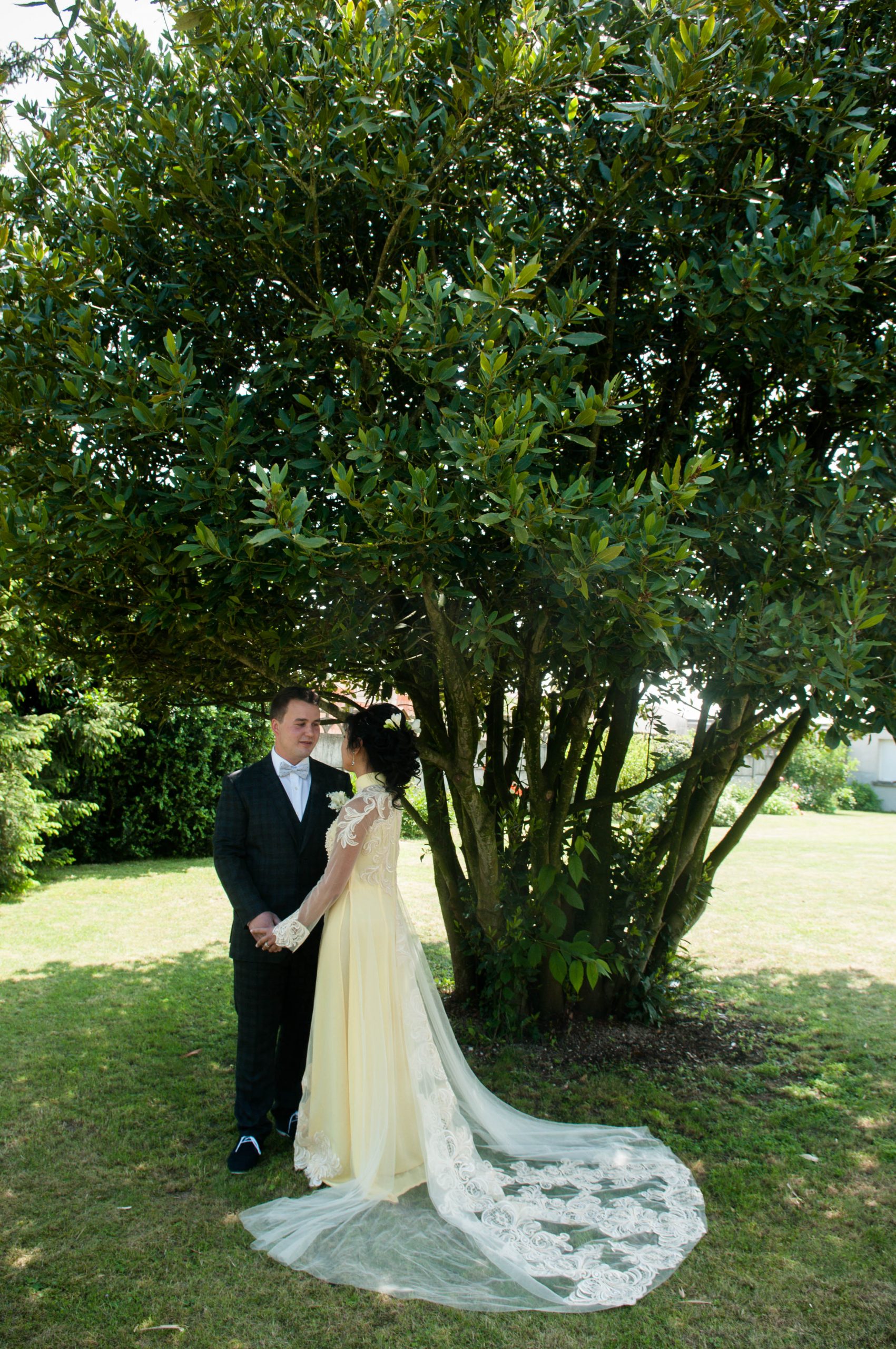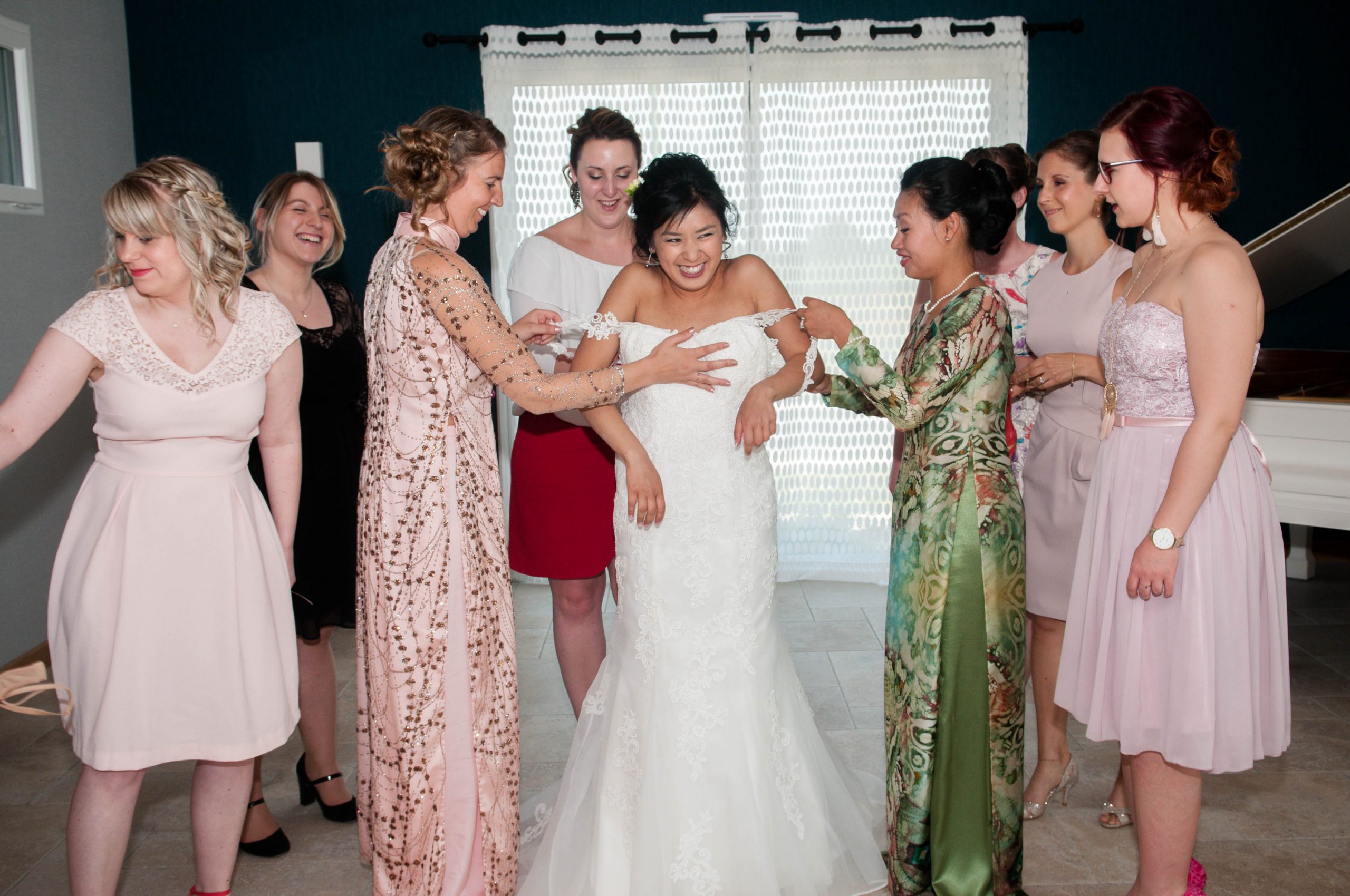 La jolie Bao après la mairie accompagnée de ses témoins et demoiselles d’honneur s’est habillée d’une belle robe blanche.